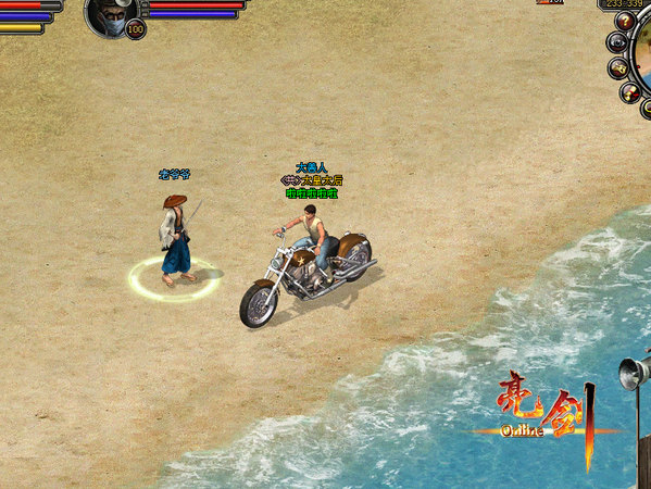 海边的一个穿着***武士服的老爷爷,似乎是在练剑。有玩家根据右侧稍微露出的喇叭判断这应该是一个军事登陆点,说不定这就是登陆冲绳的起始位置。