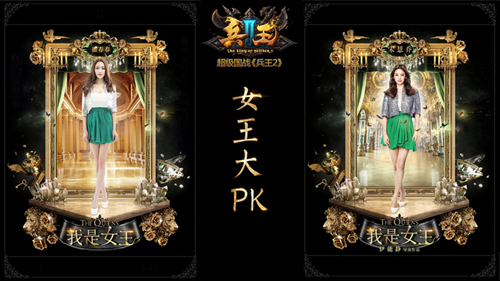 《兵王2》“我是女王”计划便重金邀请四位网络知名嫩模:潘春春(最美乳神)、小潘鼠(交大豌豆女神)、伊彦(著名演员)、黎梦恬(神仙小师妹)分别担当游戏内天、火、水、沙四国之女王。并通过一组媲美电影大片的cos美照展示女王奢华翡丽的游戏造型和作为国之女王的无双容貌气场。